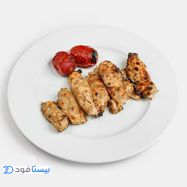 ۶ عدد فیله مرغ، ۱ عدد گوجه کبابی، یک پرس برنج ایرانی ۳۵۰ گرمی