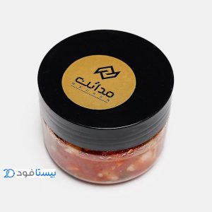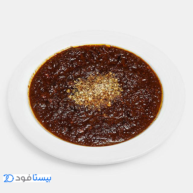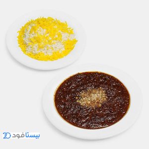 ۲۵۰ گرم خورشت، ران مرغ ریش ریش شده، گردو خرد شده، رب انار، یک پرس برنج ایرانی ۳۵۰ گرمی