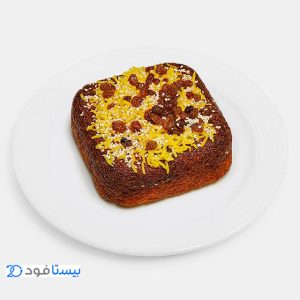 ۸۰ گرم گوشت گوسفندی ریش ریش شده، گردو، کشمش، ۳۵۰ گرم ته چین با برنج ایرانی