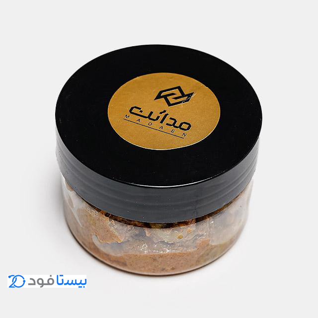 ۳۵۰ گرم کشک و بادمجان با تزیین پیاز داغ نعنا داغ، مغز گردو، نان مخصوص مداین