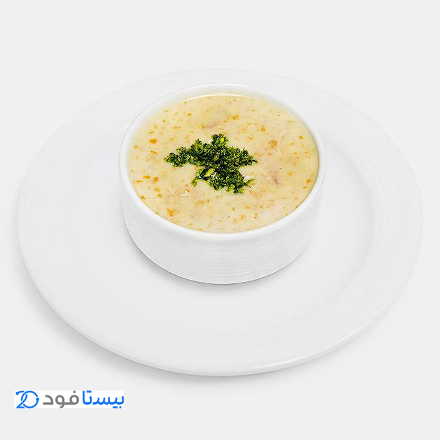 ۲۵۰ گرم، سینه مرغ ریش ریش شده، جو، خامه، هویج، جعفری، کرفس